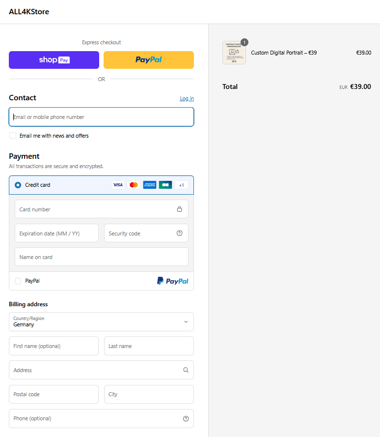 Nachdem Sie auf "Jetzt bestellen" geklickt haben, werden Sie zur Zahlungsseite weitergeleitet.